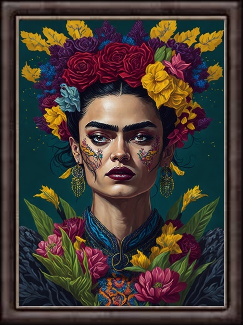 Indulge in the captivating allure of Frida Kahlo's artistic spirit with "Lady Flower," a powerful and empowering painting that celebrates femininity, symbolism, and the enduring legacy of an iconic artist.